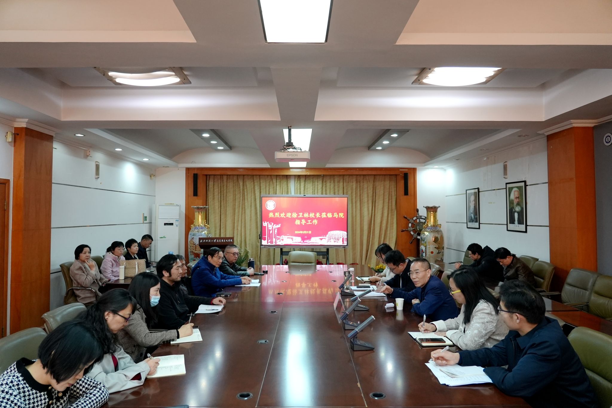 3月21日下午,校长徐卫林到澳门太阳成集团就学院整体发展和马克思主义学科建设进行调研和指导。澳门太阳成集团全体教职工参加调研会,院长肖述剑主持会议。