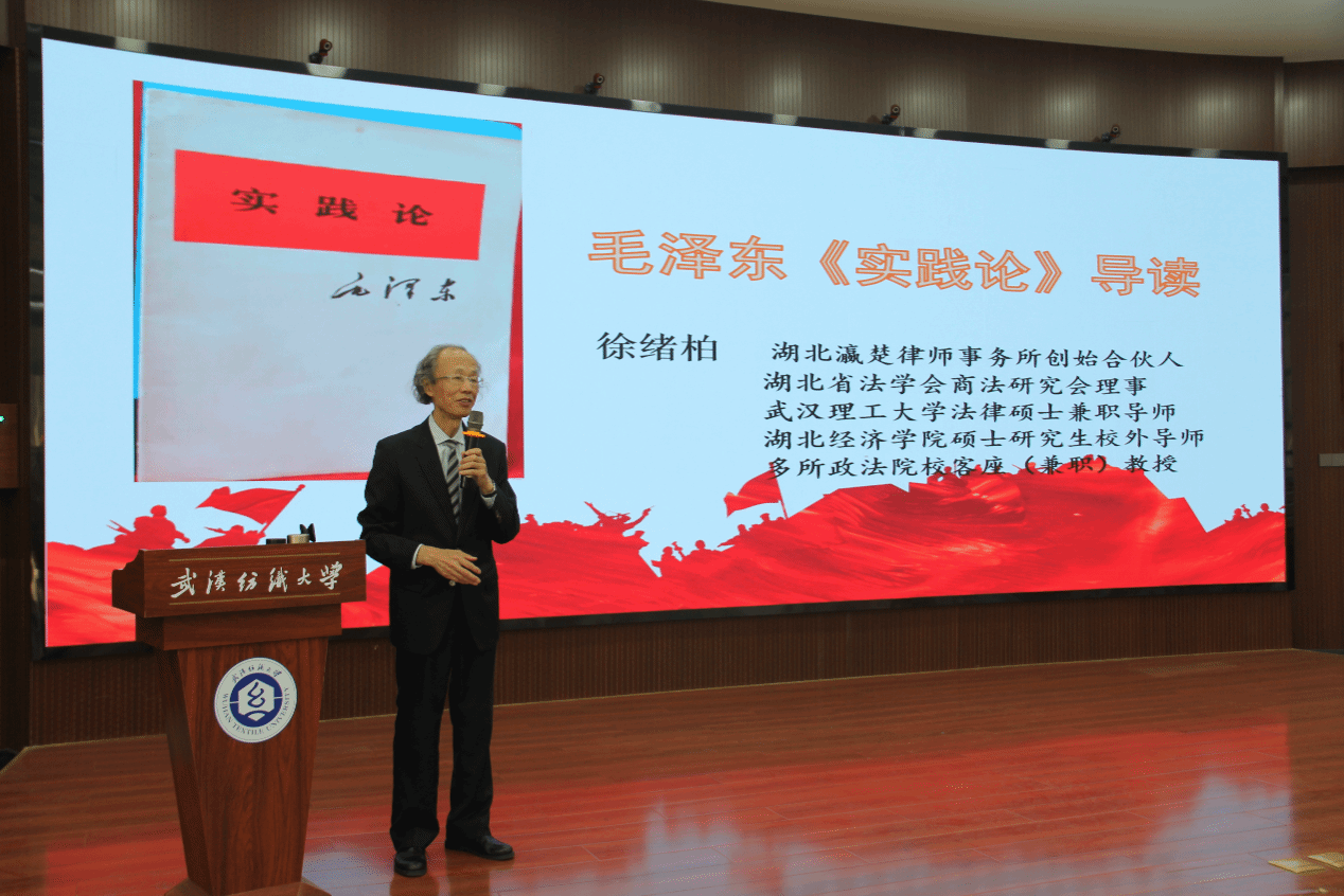 4月15日上午,澳门太阳成集团在阳光校区崇志楼T201思政课虚拟仿真研究中心举行澳门太阳成集团2025年第2期研究生论坛。湖北瀛楚律师事务所创始合伙人、执行副主任、党总支党建指导员、高级政工师徐绪柏应邀以“毛泽东《实践论》导读”为主题作学术分享。本次讲座由澳门太阳成集团教授王海燕主持,全体研究生参会。