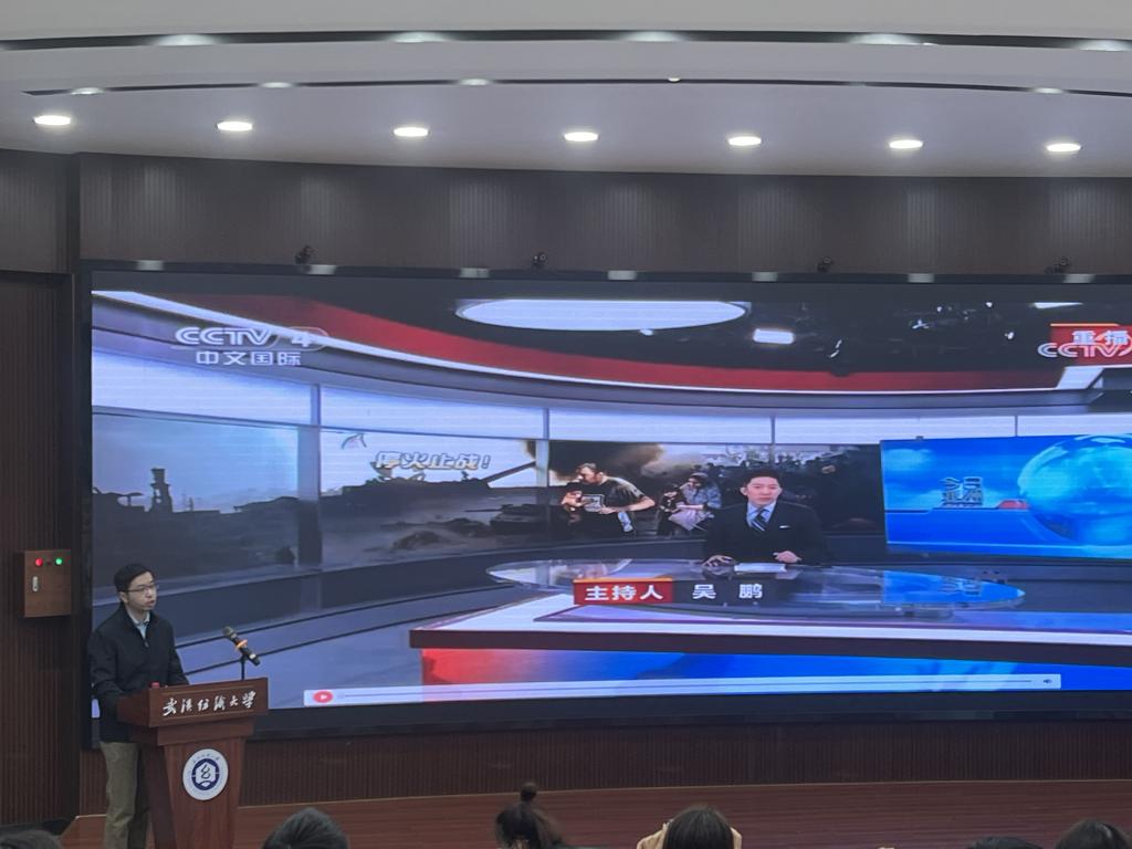 备课会邀请了武汉大学中国边界与海洋研究院副教授、国家领土主权与海洋权益协同创新中心研究员胡杰,以《巴以冲突与大国博弈》为题讲示范课。他从本次巴以冲突的进程与特点、国际社会对巴以冲突的反应、巴以冲突的历史由来与症结、中国对巴以冲突的立场解析、巴以冲突的国际影响及前景等五个方面全面梳理并深度解析这一当前时事热点,为全体老师上了一堂精彩的形势与政策课示范课。