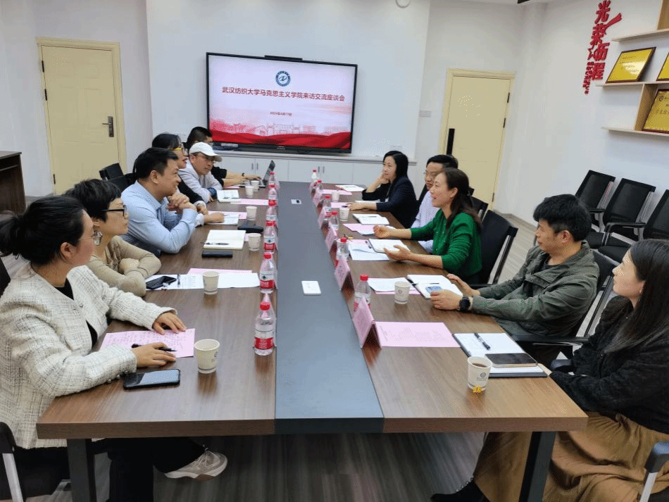 座谈会由湖工大马院院长丁银河教授主持。双方就学科建设、人才培养、教学实践、科研规划等问题展开讨论,并重点对思政实践教学的发展和落实进行了交流。肖述剑、刘艳对湖工大马院在各类思政实践教学竞赛中获得的成绩给予了祝贺和肯定,对太阳成官网思政实践教学的课程设置、教学管理、发展思路等也进行了介绍和相互探讨,双方均表示希望保持密切联系,加强合作交流,携手共同发展。