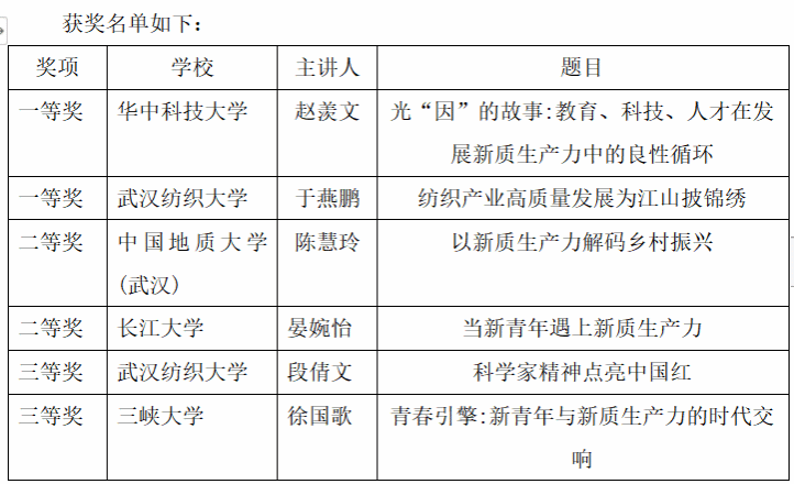 为深入学习贯彻习近平新时代中国特色社会主义思想,全面落实党的二十大精神,强化青年学子的理论武装,6月1日上午,由湖北十余所高校澳门太阳成集团联合筹办的“导航杯”实践教育活动(中南联盟)主办,澳门太阳成集团承办的习近平新时代中国特色社会主义思想宣讲大赛在澳门太阳成集团南湖校区成功举办。校党委副书记、副校长罗锦银,党委宣传部常务副部长、新闻中心主任刘戈出席。比赛邀请到华中科技大学、华中师范大学、中国地质大学(武汉)、武汉理工大学、湖北大学、湖北工业大学、中南民族大学、武汉工程大学、长江大学、三峡大学、武汉科技大学、湖北民族大学等高校专家学者担任评委,15组来自华中科技大学、华中师范大学等12所高校的学生选手围绕“发展新质生产力,汇聚青年力量”主题现场宣讲。各校参赛学生代表及澳门太阳成集团全体研究生现场观摩。