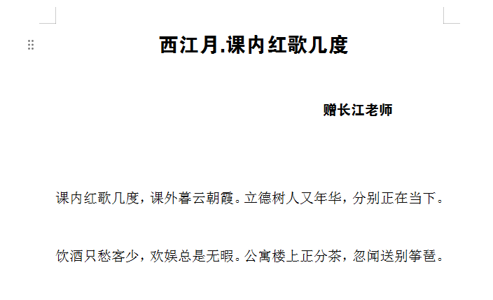 “课内红歌几度,课外暮云朝霞。立德树人又年华,分别正在当下。饮酒只愁客少,欢娱总是无暇。公寓楼上正分茶,忽闻送别筝琶。”马院李满意老师以原创词作《西江月·课内红歌几度》向刘老师赠别,词中满是对刘老师几十年如一日坚守思政讲台的赞美与不舍。李老师表示,刘老师的课“既有理论高度又有情感温度”,他的育人精神将继续引领青年教师成长。