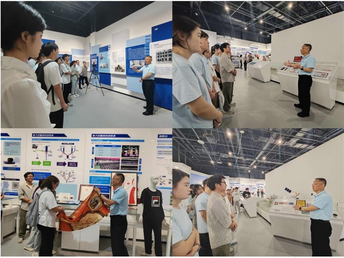 “‘衣’凸显了人与动物的区别,‘衣’使人完成了从野蛮到文明的进化。”罗锦银从传统纺织中的世界纺织史和中国纺织史展开,介绍了纺大特色学科群——智能制造、绿色制造、精美制造和效益制造,在参观大纺织、超纺织、未来纺织等各大场馆板块的过程中,让同学们了解到纺织技术在服装、农业、制造业、航空航天、医学、土木工程、通讯等多个领域的广泛应用,了解到纺织是如何解决现实中的很多难题,改变人类生活的。通过一个个鲜活的事例,让学生也让感知到纺织工业是如何助推近代现代强国发展,推动中国社会进步的。