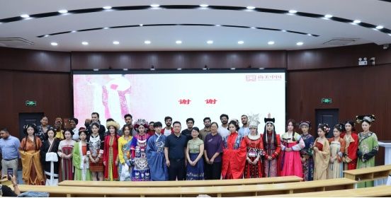 授课各阶段均进行穿插式的现场教学演示,由表演嘉宾倾情演示传统服装和民族服饰之美。丰富多彩的现场演示,使大家更深入地领略了中华服饰的魅力。最后,陶辉对青年学子提出了着装建议,强调日常着装是个人品味和修养的体现。她鼓励新时代青年学习传统服饰文化,提升自身审美素养和能力,并将其作为终身学习的能力。她用“三自”总结了课程内容:“自信”——发掘传统,积淀底蕴;“自省”——美美与共,革故鼎新;“自新”——创意未来,生生不息。