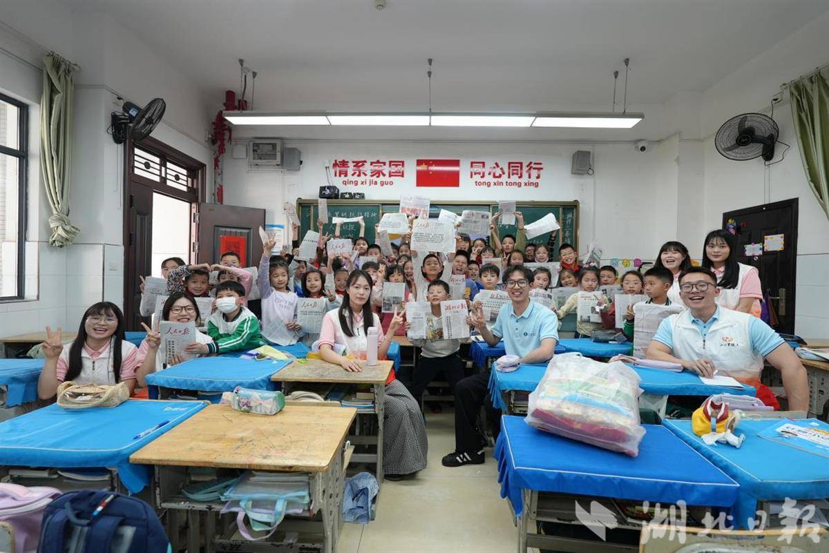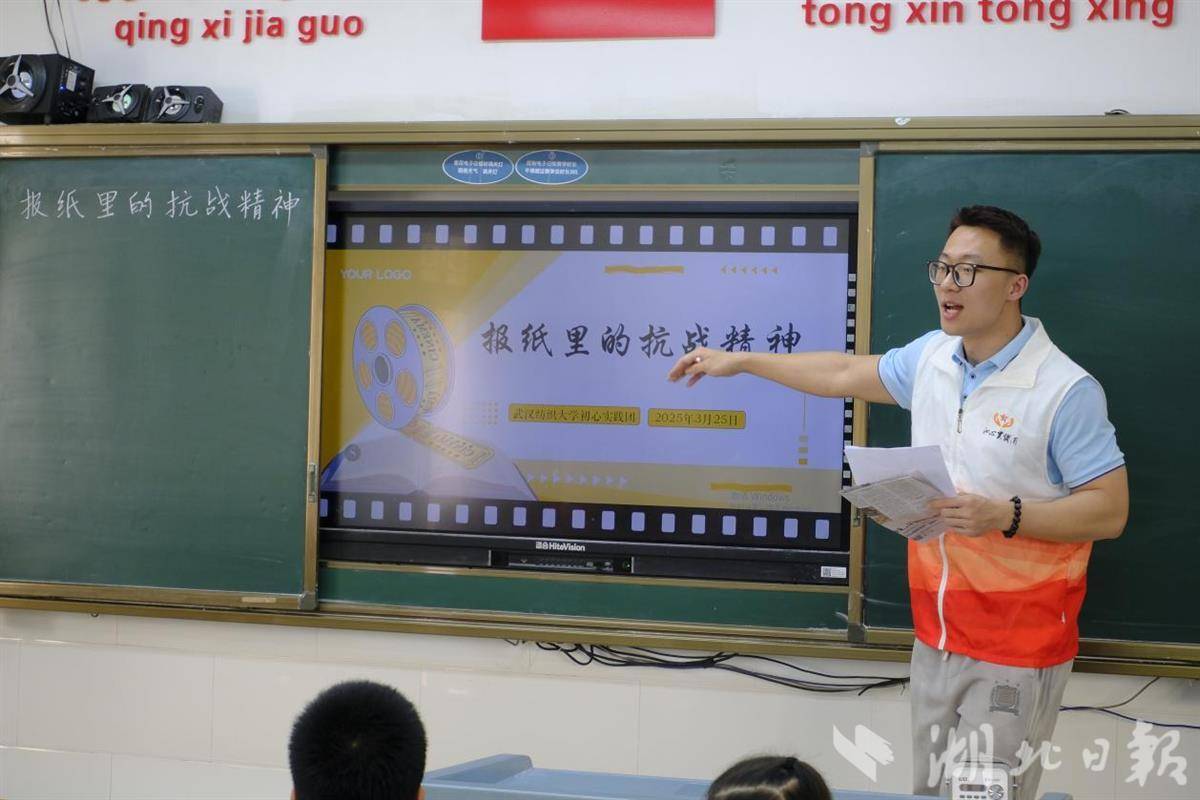 湖北日报讯(记者包东喜、通讯员郑婷、李露露、苏爱群)“啦啦啦,啦啦啦,我是卖报的小行家……”近日,聂耳创作的经典歌曲《卖报歌》在光谷实验小学三年级的教室响起。澳门太阳成集团初心实践团为同学们带来了主题教育课《报纸里的抗战精神》。