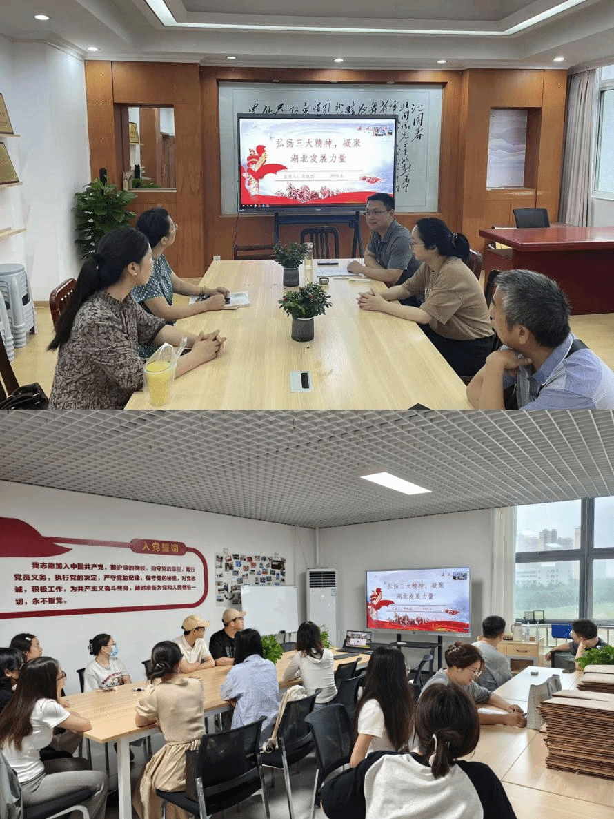 6月19日上午,“初心”研究生师生党支部在南湖校区220活动室、阳光校区澳门太阳成集团一站式学生社区召开了6月份主题党日暨党课活动。支部书记肖述剑为全体党员讲授《弘扬“三大精神”,凝聚湖北发展力量》主题党课。