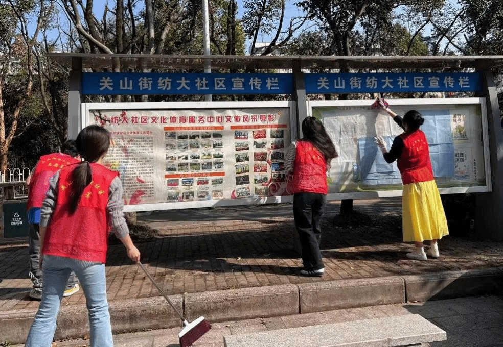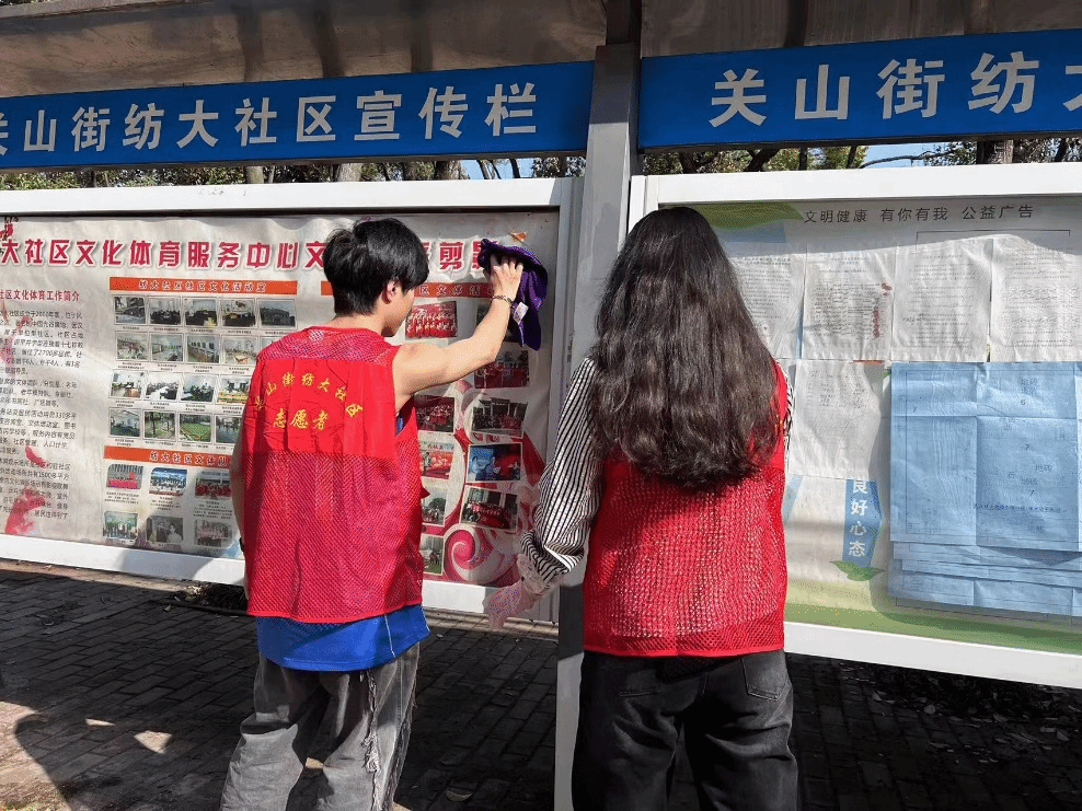 活动中,志愿者们手拿抹布、扫把等工具,来到社区广场开展清洁洒扫劳动。活动中,志愿者们清扫了广场上的落叶和垃圾,擦拭了社区宣传栏,清理了绿化带中废弃物,重点对小区内卫生死角进行了清理。同学们有条不紊地进行清扫劳动,分工有序、互帮互助。在大家的共同努力下,社区内道路和社区广场的环境面貌焕然一新。