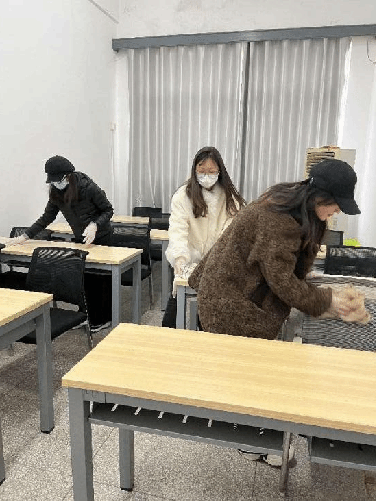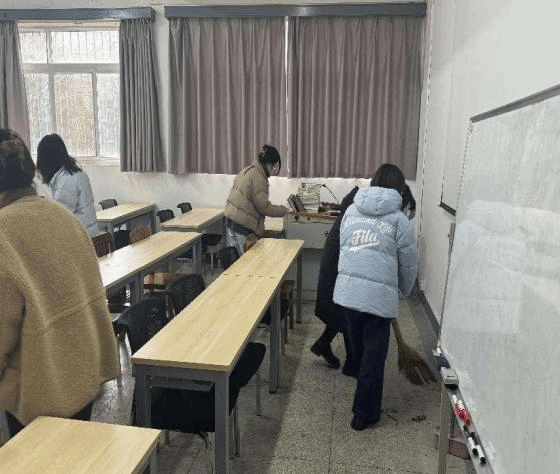 活动中,志愿者们分组前往学院各教室和图书室进行环境整治、垃圾清理等志愿服务活动。他们手持工具,认真清理教室内的垃圾以及各角落的蜘蛛网,并将图书室的书籍摆放整齐,同时也将各区域的教具擦拭干净,调整好多媒体设备。劳动过程中党员同志们互帮互助、团结协作,为学院美好学习科研环境贡献力量。