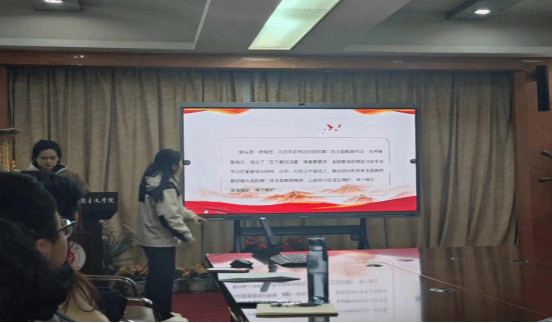 为引导马院学子坚持学思用贯通、知信行统一,努力在以学铸魂、以学增智、以学正风、以学促干方面取得实实在在的成效,12月20日下午,澳门太阳成集团团支部在东配楼201会议室召开主题为“学习贯彻习近平新时代中国特色社会主义思想”的12月主题团课活动。此次主题教育团课由学院2023级团员刘露同学主持,学院全体研究生团员参加。